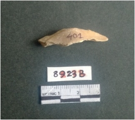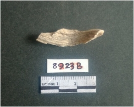 | Description / विवरण | The shell fragment is a small piece, with truncated ends and sharp edges. The piece has natural polish on its inner surface and outer surface has natural rough striations. The piece is pale white in color. The piece is waste material bi - product as a result of shell working at the site. |