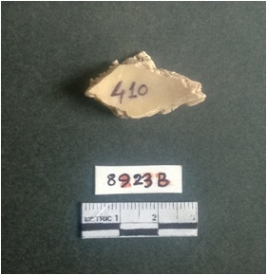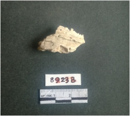 | Description / विवरण | The shell fragment is a small piece, with truncated ends and sharp edges. The piece has natural polish on its inner surface and outer surface has natural rough striations. The piece is pale white in color. The piece is waste material bi - product as a result of shell working at the site. |