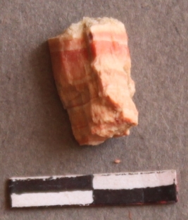 | Description / विवरण | It is a jasper fragment, with irregular flake ridges on the surface. Striking platform on the proximal end. |