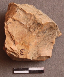 | Description / विवरण | It is a chert nodule, with irregular flaking fracture on the fragment. Striking platform on the proximal end. |