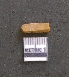 | Description / विवरण | It is a chert flake with a striking platform, cortex on one end. There are many flake scars with ripples on it. |