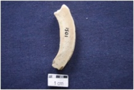 | Description / विवरण | A piece of shell bangle manufacturing waste. |