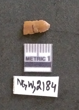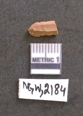 | Description / विवरण | It is a chert flake with a striking platform, cortex on one end. There are many flake scars with ripples on it. |