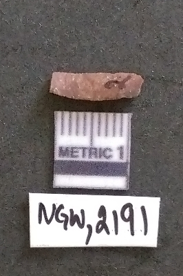 | Description / विवरण | It is a chert flake with a striking platform, cortex on one end. There are many flake scars with ripples on it. |