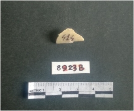 | Description / विवरण | The shell fragment is a small piece, with truncated ends and sharp edges. The piece has natural polish on its inner surface and outer surface has natural rough striations. The piece is pale white in color. The piece is waste material bi - product as a result of shell working at the site. |