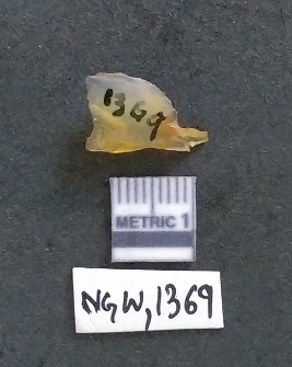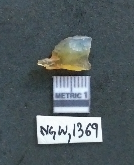 | Description / विवरण | It is a chalcedony flake with a bulb of percussion on the ventral side, cortex on one end. |