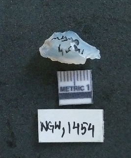 | Description / विवरण | It is a quartz flake with a bulb of percussion on the ventral side, cortex on one end. |