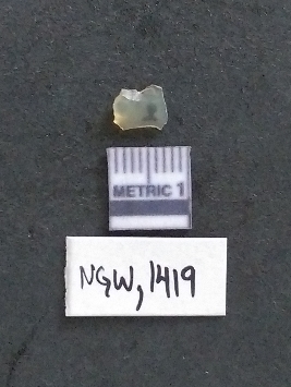 | Description / विवरण | It is a chalcedony flake with a bulb of percussion on the ventral side, cortex on one end. |