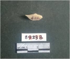 | Description / विवरण | The shell fragment is a small piece, with truncated ends and sharp edges. The piece has natural polish on its inner surface and outer surface has natural rough striations. The piece is pale white in color. The piece is waste material bi - product as a result of shell working at the site. |