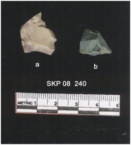 | Description / विवरण | It is a lithic debitage of chert flake with bands and bulb of percussion on one side and flaked grooves and ridges on the other side. |