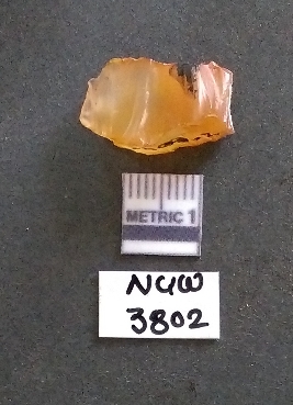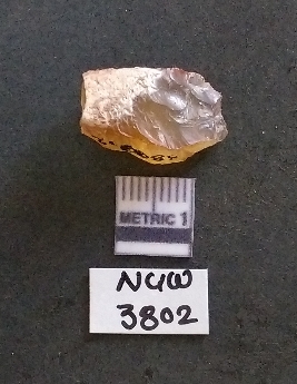 | Description / विवरण | It is a chalcedony flake with a bulb of percussion on the ventral side, cortex on one end. |