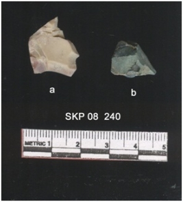 | Description / विवरण | Banded chert with a bulb of percussion on ventral side and flaked. Greenish in color. |