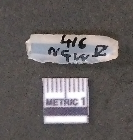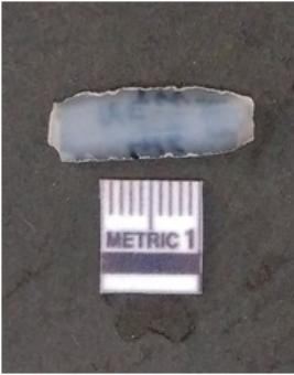 | Description / विवरण | It is a chalcedony flake with a bulb of percussion on the ventral side, cortex on one end. |