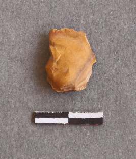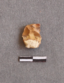 | Description / विवरण | It is chert fragment, with cortex on it. Flake edges on it. Striking platform with bulb on the ventral side. |