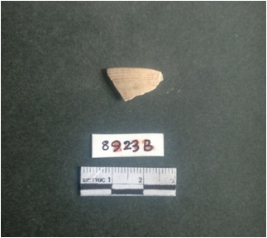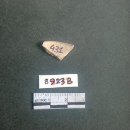 | Description / विवरण | The shell fragment is a small piece, with truncated ends and sharp edges. The piece has natural polish on its inner surface and outer surface has natural rough striations. The piece is pale white in color. The piece is waste material bi - product as a result of shell working at the site. |