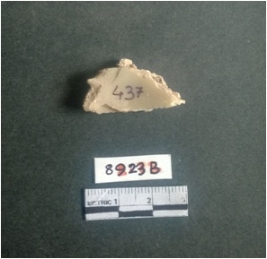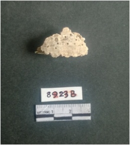 | Description / विवरण | The shell fragment is a small piece, with truncated ends and sharp edges. The piece has natural polish on its inner surface and outer surface has natural rough striations. The piece is pale white in color. The piece is waste material bi - product as a result of shell working at the site. |