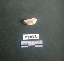 | Description / विवरण | The shell fragment is a small piece, with truncated ends and sharp edges. The piece has natural polish on its inner surface and outer surface has natural rough striations. The piece is pale white in color. The piece is waste material bi - product as a result of shell working at the site. |