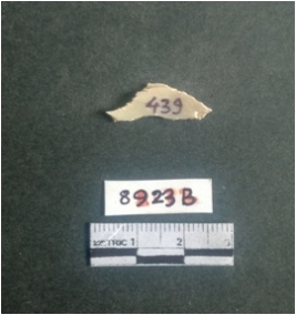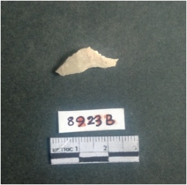 | Description / विवरण | The shell fragment is a small piece, with truncated ends and sharp edges. The piece has natural polish on its inner surface and outer surface has natural rough striations. The piece is pale white in color. The piece is waste material bi - product as a result of shell working at the site. |