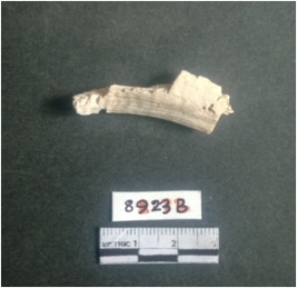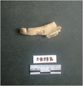 | Description / विवरण | The shell fragment is a small piece, with truncated ends and sharp edges. The piece has natural polish on its inner surface and outer surface has natural rough striations. The piece is pale white in color. The piece is waste material bi - product as a result of shell working at the site. |