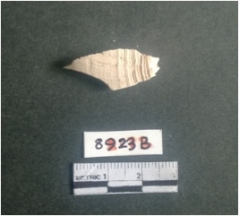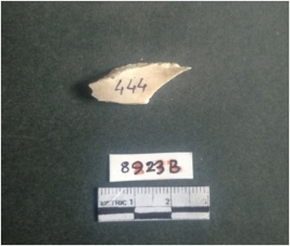 | Description / विवरण | The shell fragment is a small piece, with truncated ends and sharp edges. The piece has natural polish on its inner surface and outer surface has natural rough striations. The piece is pale white in color. The piece is waste material bi - product as a result of shell working at the site. |