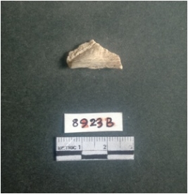 | Description / विवरण | The shell fragment is a small piece, with truncated ends and sharp edges. The piece has natural polish on its inner surface and outer surface has natural rough striations. The piece is pale white in color. The piece is waste material bi - product as a result of shell working at the site. |