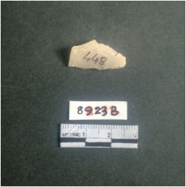 | Description / विवरण | The shell fragment is a small piece, with truncated ends and sharp edges. The piece has natural polish on its inner surface and outer surface has natural rough striations. The piece is pale white in color. The piece is waste material bi - product as a result of shell working at the site. |