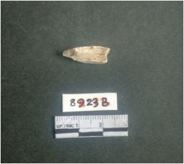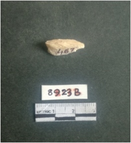 | Description / विवरण | The shell fragment is a small piece, with truncated ends and sharp edges. The piece has natural polish on its inner surface and outer surface has natural rough striations. The piece is pale white in color. The piece is waste material bi - product as a result of shell working at the site. |