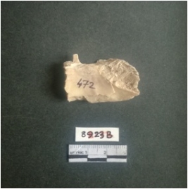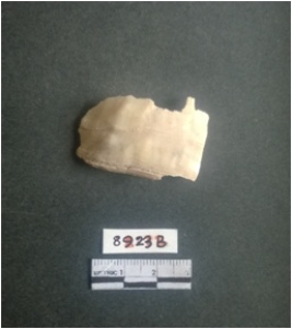 | Description / विवरण | The shell fragment is a small piece, with truncated ends and sharp edges. The piece has natural polish on its inner surface and outer surface has natural rough striations. The piece is pale white in color. The piece is waste material bi - product as a result of shell working at the site. |