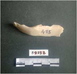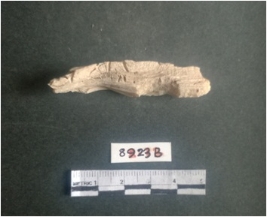 | Description / विवरण | The shell fragment is a small piece, with truncated ends and sharp edges. The piece has natural polish on its inner surface and outer surface has natural rough striations. The piece is pale white in color. The piece is waste material bi - product as a result of shell working at the site. |