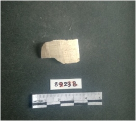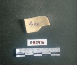 | Description / विवरण | The shell fragment is a small piece, with truncated ends and sharp edges. The piece has natural polish on its inner surface and outer surface has natural rough striations. The piece is pale white in color. The piece is waste material bi - product as a result of shell working at the site. |