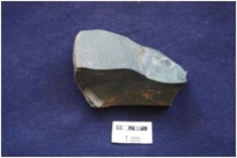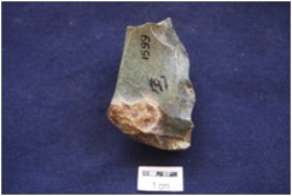 | Description / विवरण | A nodule with a striking platform with negative flake scares and one crated guiding ridge. |