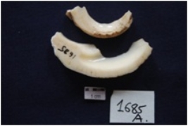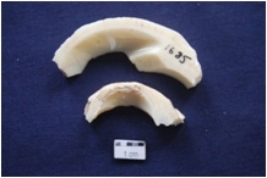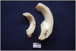 | Description / विवरण | 2 pieces of shell bangle manufacturing waste. |