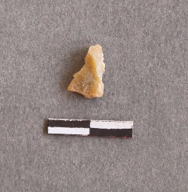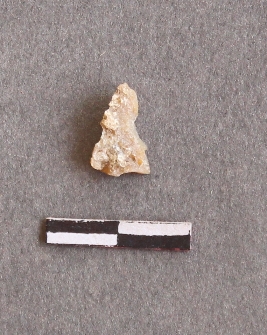 | Description / विवरण | It is a chert fragment, with a striking platform, cortex on one end; there are many flake scars with ripples on it. |