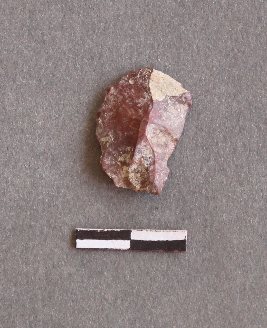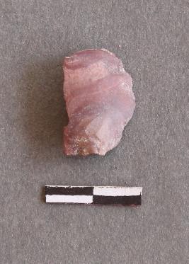 | Description / विवरण | It is a chert fragment, with a striking platform, cortex on one end; there are many flake scars with ripples on it. |