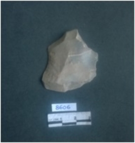 | Description / विवरण | This is a chert stone fragment. Flaked with uneven rough surface. Bulb of percussion seen. |