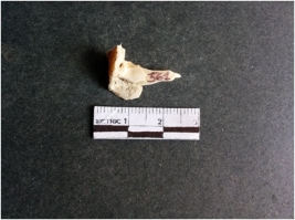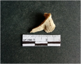 | Description / विवरण | The shell fragment is a small piece, with truncated ends and sharp edges. The piece has natural polish on its inner surface and outer surface has natural rough striations. The piece is pale white in color. The piece is waste material bi - product as a result of shell working at the site. |