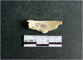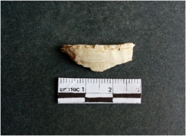 | Description / विवरण | The shell fragment is a small piece, with truncated ends and sharp edges. The piece has natural polish on its inner surface and outer surface has natural rough striations. The piece is pale white in color. The piece is waste material bi - product as a result of shell working at the site. |