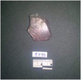 | Description / विवरण | This is a fragment of jasper stone. Flaked and bulb of percussion seen with ripples. A very small fraction of cortex seen on one corner of the surface. |