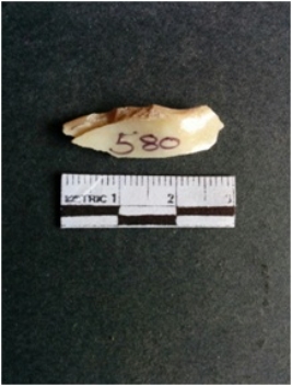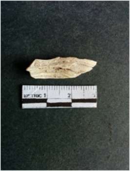 | Description / विवरण | The shell fragment is a small piece, with truncated ends and sharp edges. The piece has natural polish on its inner surface and outer surface has natural rough striations. The piece is pale white in color. The piece is waste material bi - product as a result of shell working at the site. |