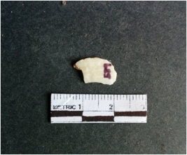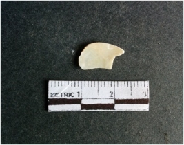 | Description / विवरण | The shell fragment is a small piece, with truncated ends and sharp edges. The piece has natural polish on its inner surface and outer surface has natural rough striations. The piece is pale white in color. The piece is waste material bi - product as a result of shell working at the site. |