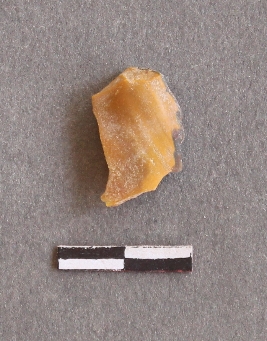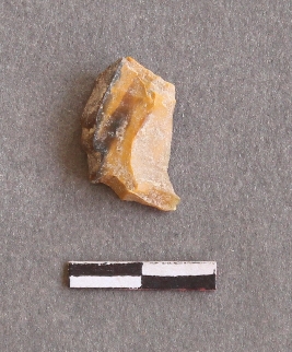 | Description / विवरण | It is a chert fragment, with a striking platform, cortex on one end; there are many flake scars with ripples on it. |