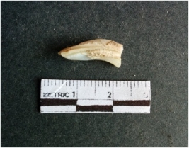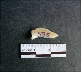 | Description / विवरण | The shell fragment is a small piece, with truncated ends and sharp edges. The piece has natural polish on its inner surface and outer surface has natural rough striations. The piece is pale white in color. The piece is waste material bi - product as a result of shell working at the site. |
