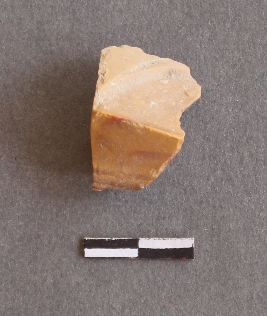 | Description / विवरण | It is a chert fragment, with a striking platform, cortex on one end; there are many flake scars with ripples on it. |