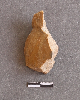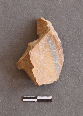 | Description / विवरण | It is a chert fragment, with a striking platform, cortex on one end; there are many flake scars with ripples on it. |