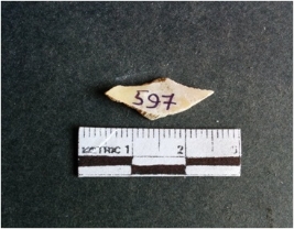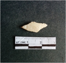 | Description / विवरण | The shell fragment is a small piece, with truncated ends and sharp edges. The piece has natural polish on its inner surface and outer surface has natural rough striations. The piece is pale white in color. The piece is waste material bi - product as a result of shell working at the site. |