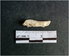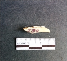 | Description / विवरण | The shell fragment is a small piece, with truncated ends and sharp edges. The piece has natural polish on its inner surface and outer surface has natural rough striations. The piece is pale white in color. The piece is waste material bi - product as a result of shell working at the site. |