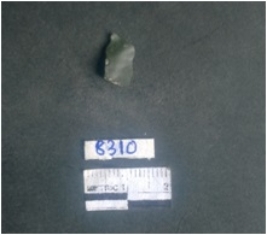 | Description / विवरण | This is a fragment of chert stone, a small flake. There is a bulb of percussion with ripples and sharp edges on one side. |