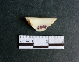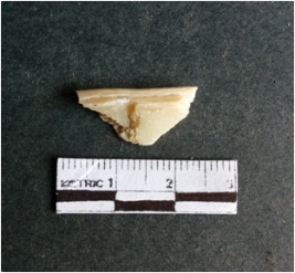 | Description / विवरण | The shell fragment is a small piece, with truncated ends and sharp edges. The piece has natural polish on its inner surface and outer surface has natural rough striations. The piece is pale white in color. The piece is waste material bi - product as a result of shell working at the site. |