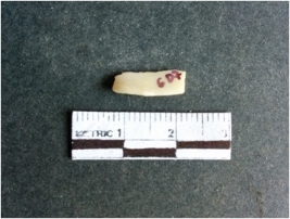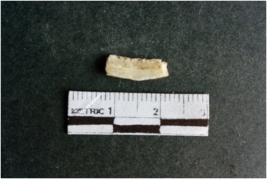 | Description / विवरण | The shell fragment is a small piece, with truncated ends and sharp edges. The piece has natural polish on its inner surface and outer surface has natural rough striations. The piece is pale white in color. The piece is waste material bi - product as a result of shell working at the site. |