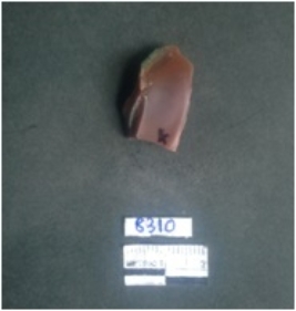 | Description / विवरण | This is a fragment of jasper with one side flaked ridges and the other shows the bulb of percussion. |